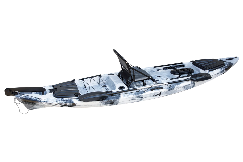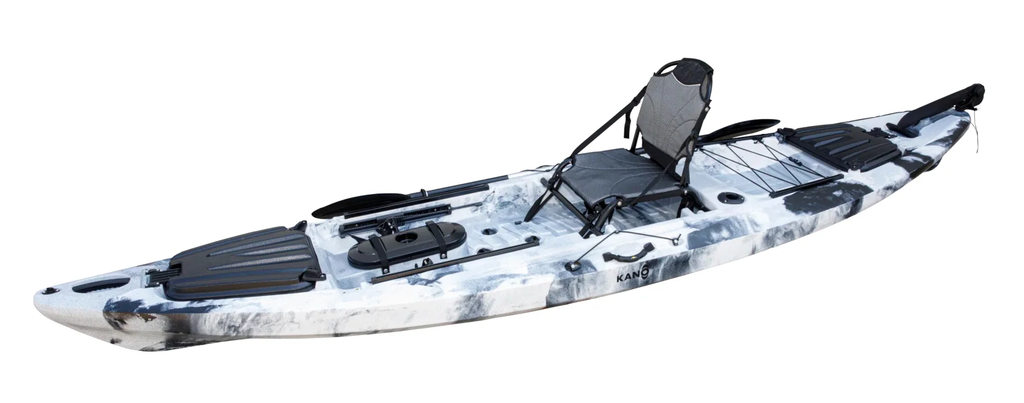 Estamos ante uno de los mejores kayaks de pesca profesional, el Big Dace Pro Angler Kano, diseñado y pensado para los amantes de la pesca en kayak más exigentes. Por su gran capacidad de carga de hasta 200 kg, el tambucho estanco te ayudará a almacenar una gran cantidad de peces y su portaequipaje trasero, te trasportara todo lo que necesites. Además, este kayak también esta equipado con un adaptador de riel y dos rieles deslizantes para mas opciones de montaje de tus diversos artes de pesca, un sistema de timón que te brindara seguridad y un asiento elevado grande y cómodo para que tengas toda la comodidad en pescar.