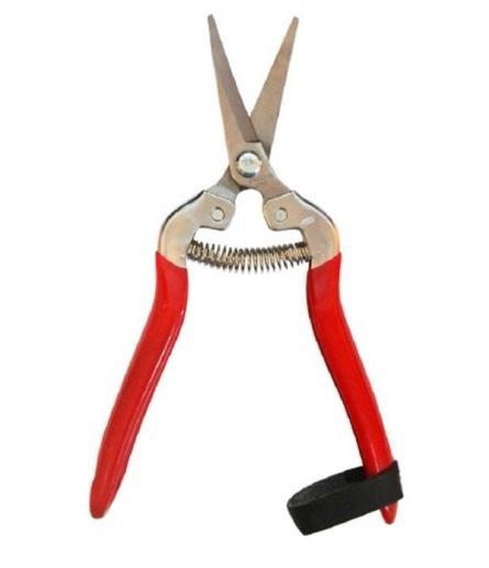 La tijera de vendimia con hoja curva está fabricada en acero inoxidable, lo que le otorga alta resistencia a la corrosión y un desempeño confiable en trabajos de cosecha. Su diseño curvo facilita el acceso a racimos y tallos, permitiendo realizar cortes precisos y controlados con menor esfuerzo.